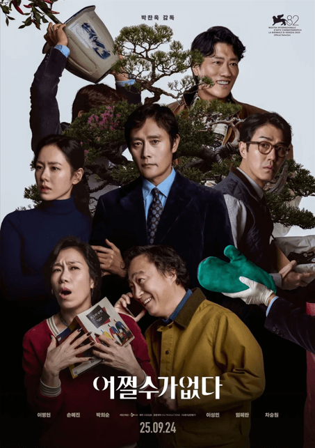 이 작품에서 반복적으로 등장하는 분재와 온실의 이미지는 만수의 도덕규범을 시각적으로 드러내는 장치입니다. 분재는 살아 있지만 인위적으로 형태가 통제된 존재이며, 이는 사회가 요구하는 가장의 역할과 규범을 상징합니다. 만수는 처음에는 윤리를 지키려 애쓰지만, 시간이 지날수록 가지를 자르듯 자신의 기준을 하나씩 제거합니다. 살인은 분노가 아닌 효율로, 죄책감은 자기 암시로 대체됩니다. 특히 시체를 분해하지 못하고 철사로 묶어 묻는 장면은 그가 완전히 비인간화되지 않았음을 보여주면서도, 이미 돌아올 수 없는 선을 넘었음을 암시합니다. 어쩔 수가 없다 는 개인의 윤리가 사회 구조 속에서 어떻게 조정되고 훼손되는지를 차갑게 보여주는 영화입니다.